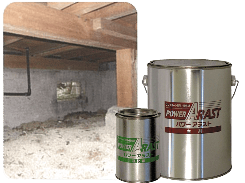 パワーアラストで劣化補修した基礎にアラミド繊維シートで補強後、パワーアラストを塗布。