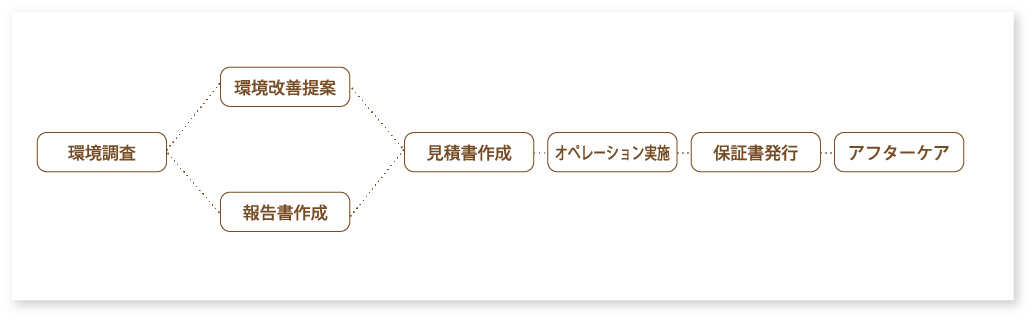 ハトやカラス等の鳥が家屋、工場、マンション等に巣を作って住み着くことにより、糞害、悪臭、病原菌による健康被害が深刻な問題になっています。防鳥ネット等で鳥の侵入を防ぎます。