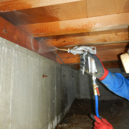 アクアフォームは、温室効果の大きいフロンガスを使わず、水を使って現場で発泡させる断熱材。水を含むポリオールとイソシアネートを混合することで発生する炭酸ガスを発泡剤として使用する、人と地球に優しい硬質ウレタンフォーム素材です。